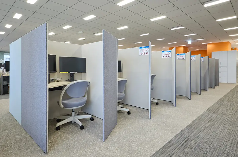 集中作業にぴったりの半個室ブース。周囲を気にせず、作業に取り組むことができます。