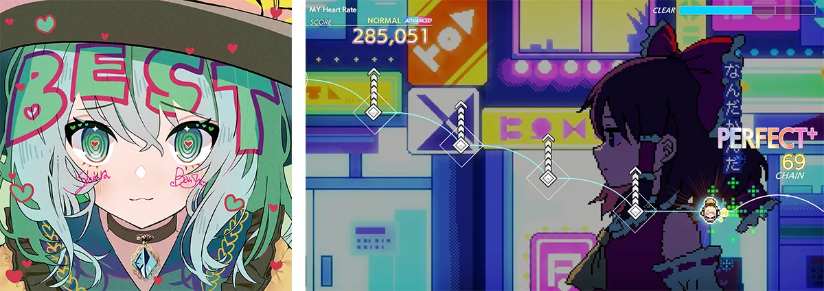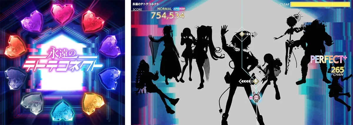 『グルーヴコースター』シリーズ初収録となる4曲が『グルーヴコースター フューチャーパフォーマーズ』に登場。お馴染み森羅万象による「MY Heart Rate」、シリーズ初参戦となる玲瓏のHydrangeaによる「桜花爛漫」の2曲の東方アレンジ曲に加え、『テトテコネクト』の人気楽曲「雨夜月」、「永遠のテトテコネクト」を収録!ぜひお楽しみください。全ての曲は、アップデートするとすぐに「演奏」モードにてお楽しみいただけ、さらに「ストーリー」モードにも一部のステージに課題曲として追加されます。