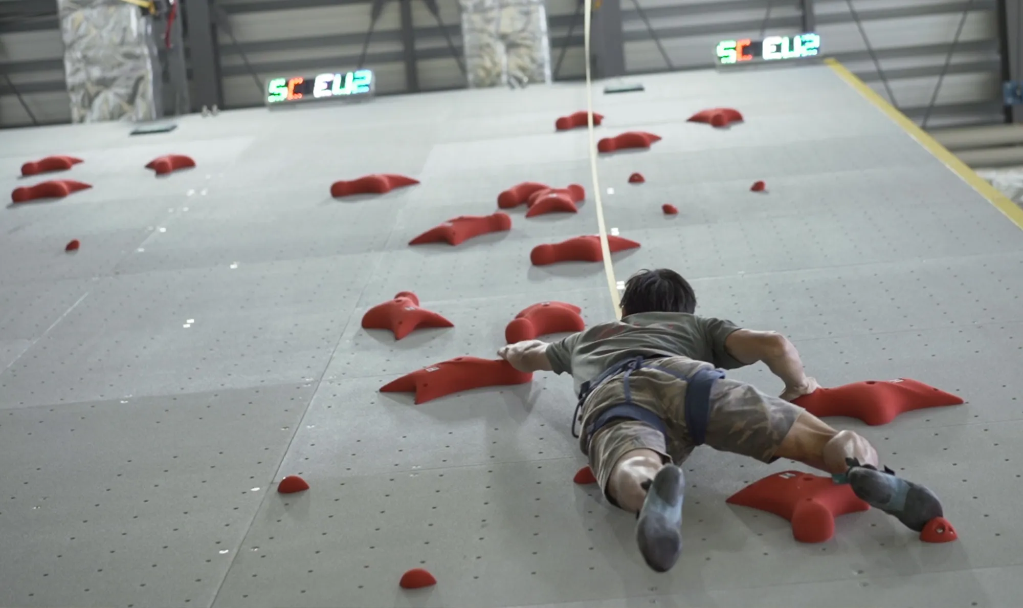 初心者が挑戦する場合、最初の一手からつかむことが難しい競技ですが、世界のトップ選手はその壁を約5秒で駆け登る超人的な体力を持っています。