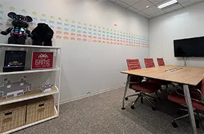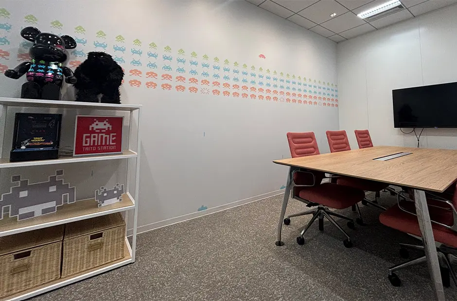 会議室の壁紙はそれぞれ違っていて、こんなところにも遊び心があふれています。