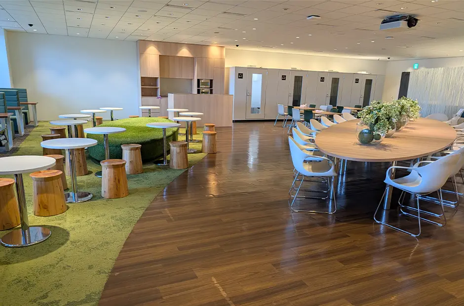 開放感いっぱいのフリースペースは、休憩やランチタイムにもぴったりです!
