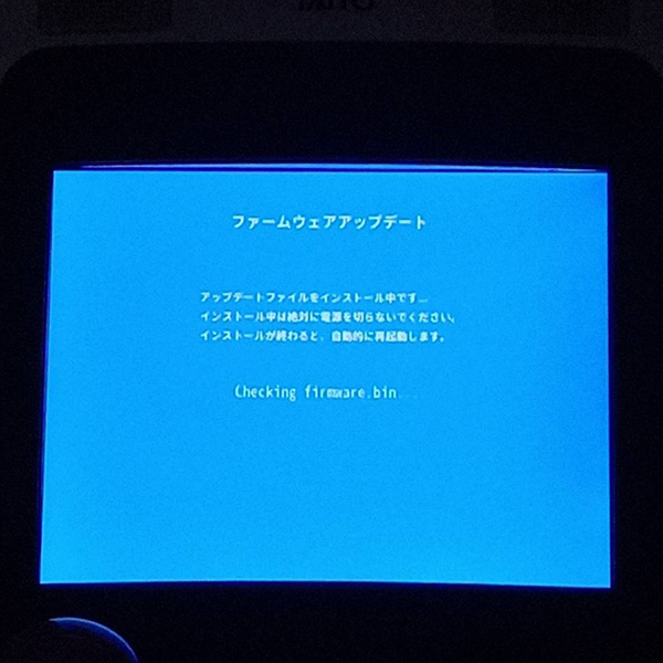 イーグレットツーミニ本体が立ち上がり、ファームアップデートの画面(※画像参照)が表示されたら「EボタンとFボタン」を離します。