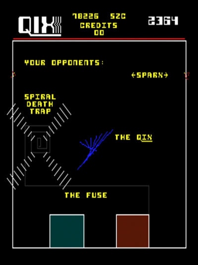 2個の前進ボタンを駆使しながらラインを引いて画面の75%以上を占領するとクリアです。低速前進で占領すると高得点。敵がラインに触れたり、マーカーに当たるとミスになります。