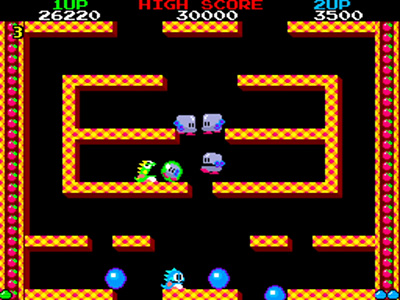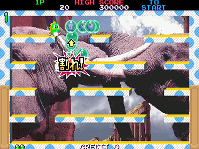あわをはいて、敵をとじこめ、つのや背びれで割っちゃえ!全ての敵をやっつけると1面クリア。100面+αをクリアして真のエンディングに君はたどりつけるかな?