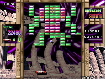 バウスを移動してエナジーボールでスペースウォールを破壊!アイテムを取るとパワーアップ。画面のスペースウォールを全部破壊するとラウンドクリア。最終ラウンドを目指そう!