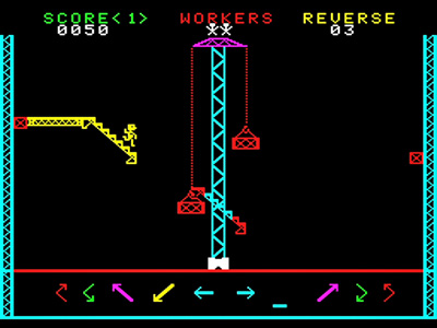 建設現場のチーフエンジニアとなって、労働者を左から右へ横断できるように鉄骨の橋を建設します。右上の反転数(REVERSE)に気を付けて労働者を落下させないように横断させましょう。