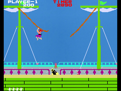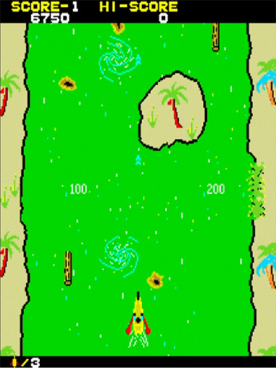 動物や悪者、流木がカヌーの行く手を阻むのでテクニックを駆使してゴールを目指しましょう。海外向けに生産され、国内でも少数稼動された幻のゲームです。