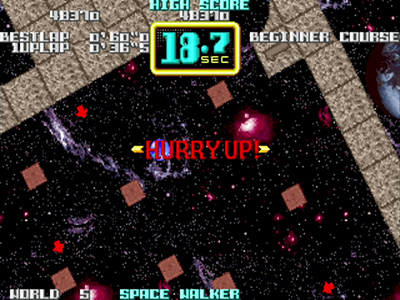 パドルで画面を回しながら、タイム内になるべく速くゴールを目指します。シェイクボタンを押すとボールがジャンプし、押し続けるとスピードが速くなります。ボールを速く転がしてゴールを目指しましょう!