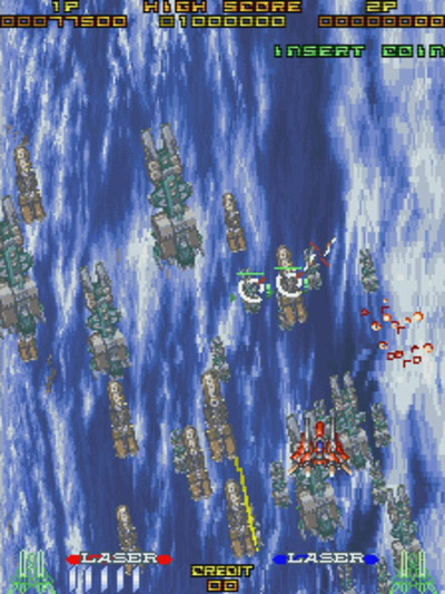シルバーコイン5枚毎にショットレベルがUPし、金塊25個でボムがボンバーマックスとしてストックされます。惑星グロリアを進み、宇宙賊を倒しましょう。