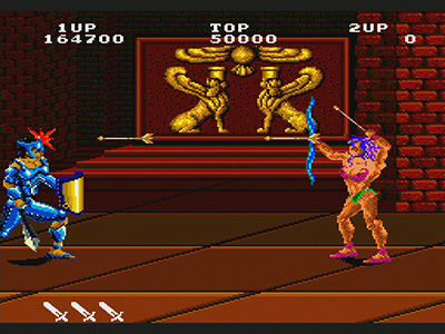 盗賊ラスタンとなり、武器やアイテムを手に入れながら、剣やジャンプを駆使して敵を倒しながら進みましょう。果たしてドラゴンに出会い、倒すことはできるか!?