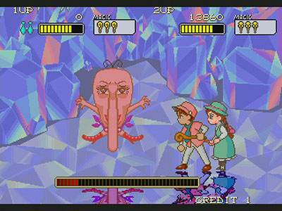 アワをはいて、敵をとじこめ、つのや背びれで割っちゃえ!全ての敵をやっつけて4人は元の姿に戻れるのでしょうか?コース分岐も用意されマルチエンディングが楽しめます。