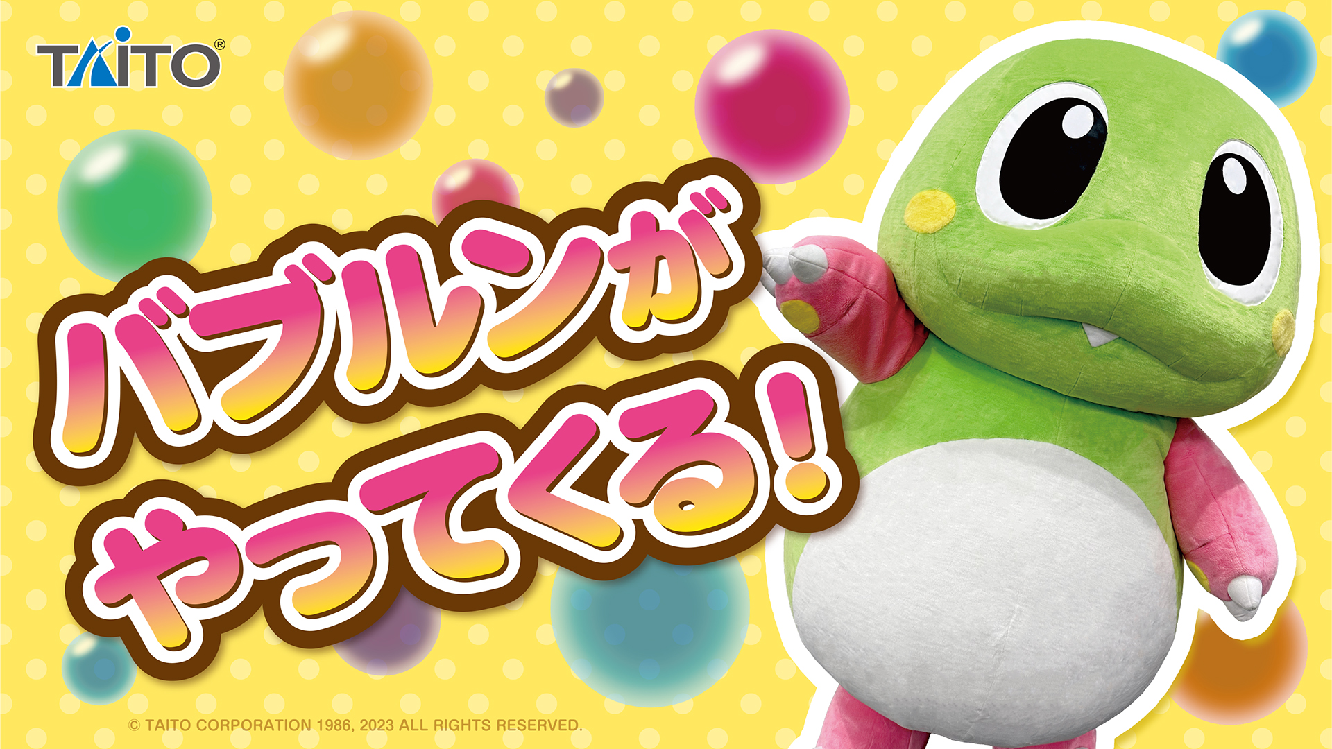 『バブルボブル』『パズルボブル』シリーズの主人公バブルンが、J1リーグ所属のプロサッカーチームFC町田ゼルビアのホームゲームイベント「まちだ感謝祭」のマスコット大集合イベントに登場!
