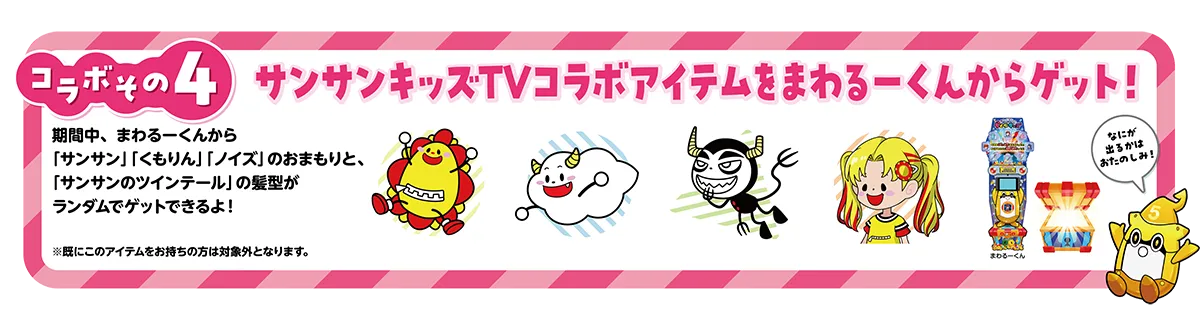 「サンサンキッズ・TVコラボアイテムをまわるーくんからゲット!」