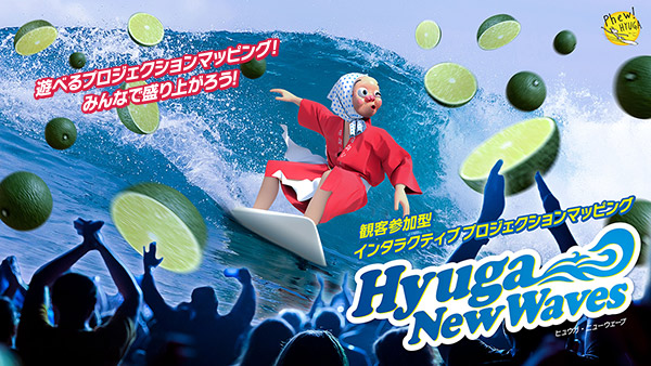 伝統×テクノロジーをコンセプトに日向市の観光資源であるサーフィン、ひょっとこ、へべすをテーマとした、鑑賞型の「ひょっとこイリュージョンナイト」とインタラクティブの「へべすサーファー」の2作品を公開します。