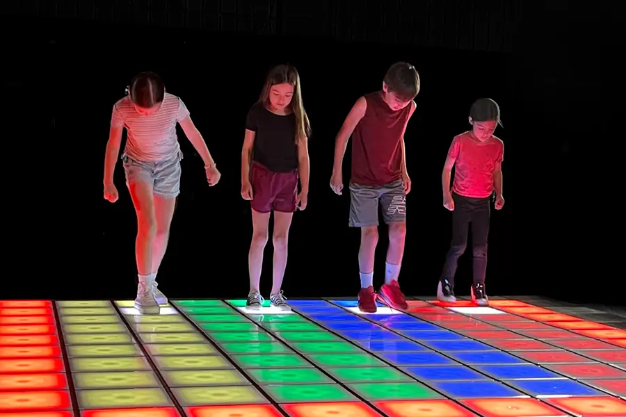 日本初導入(※)となる「Flash Pads(フラッシュパッズ)」は、色とりどりの光るタイルに合わせ体を動かし、楽しむアトラクション。最大4人同時プレイが可能。