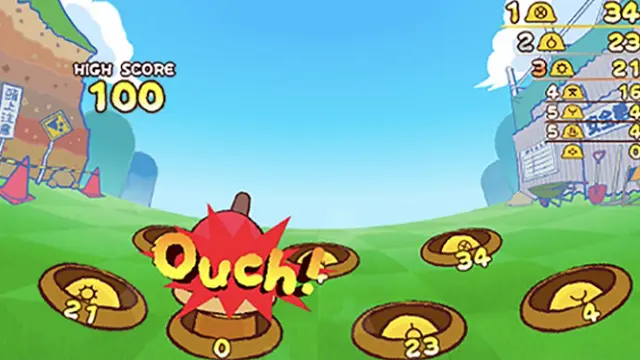 「みんなでもぐらたたかれ」は、プレイヤーがもぐらたたきのもぐらになって、穴から頭をだしている時間(=得点)を競う“人間もぐらたたきゲーム”。