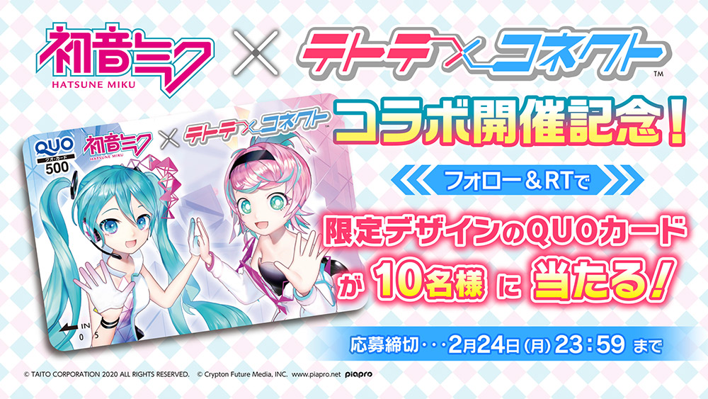 現在開発中の新作アーケードゲーム機「テトテ×コネクト」にて、本稼働開始と同時に『初音ミク』とのコラボレーション開催が決定いたしました!