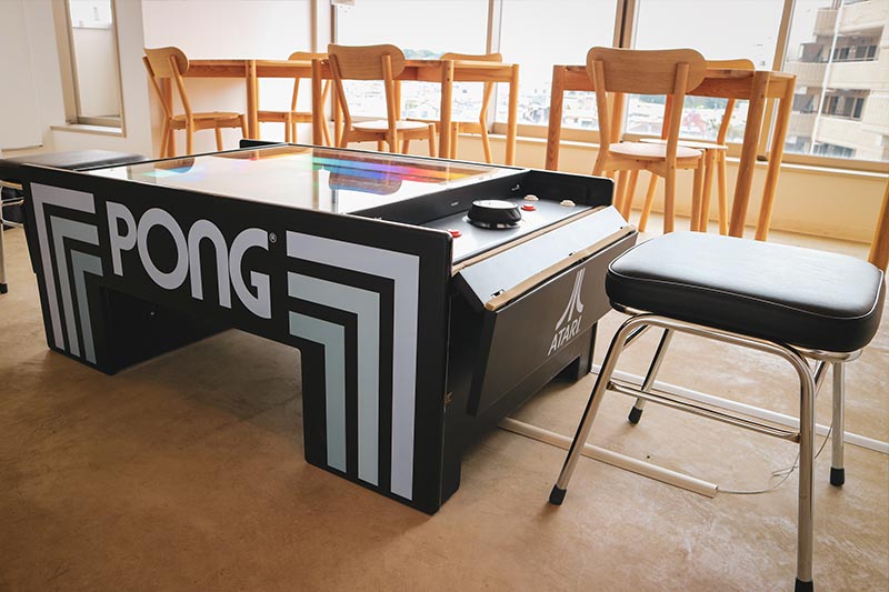 「TABLE PONG」は上面にガラスを採用しているためカフェメニューを傍らにゲームが楽しめます。静かに刻まれるランドリーのドラム音と海からの風が造る穏やかな空間の中で、いにしえのゲームを楽しんでみてはいかがでしょうか。