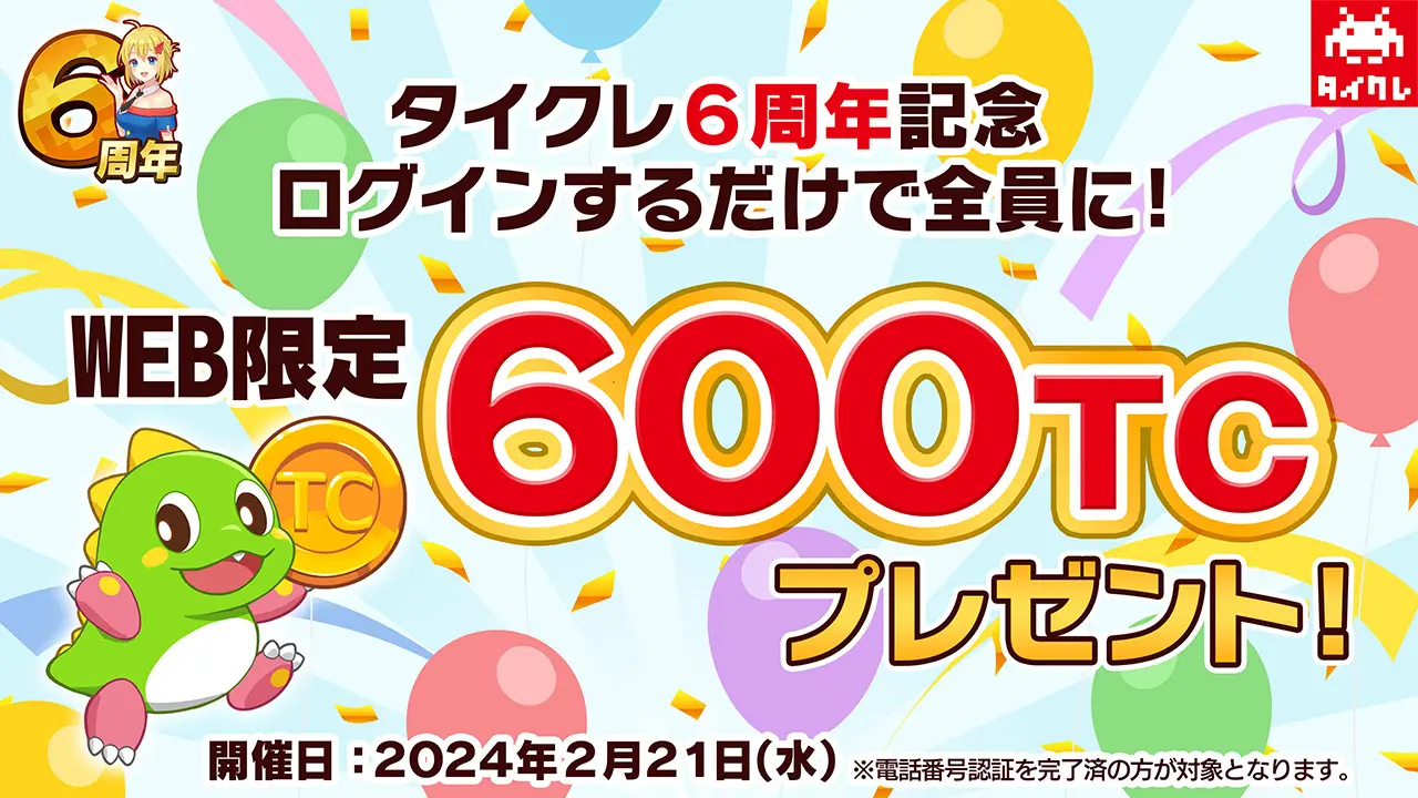 2/21は「タイクレの日」WEB限定! ログインするだけで「600TC」プレゼント!
