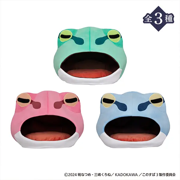 本くじでは作品のキャラクター「アクア」たちの新規描き下ろしイラストが使用された商品や、アニメで登場するモンスター「ジャイアントトード」の中で、ひと休みすることができるぬいぐるみなど、ファン必見の魅力的なラインナップとなっております。