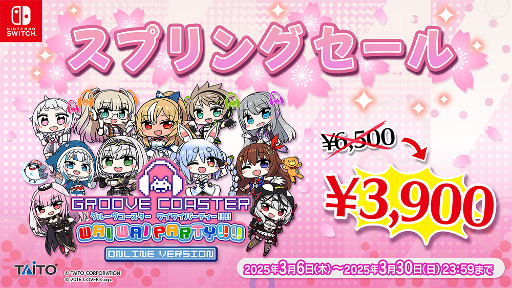 さらに、《hololive SUPER EXPO 2025》の新作グルコスの出展を記念して、好評発売中の『グルーヴコースター ワイワイパーティー!!!!』の本体セールも開催いたします。